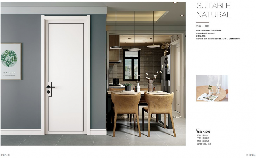中怡木门带你走进品质生活,触手所及的温柔细腻,犹如抚摸肌肤一般的细腻光滑触感,利落明快的线条增加层次感,感触真正的自然艺术之美。