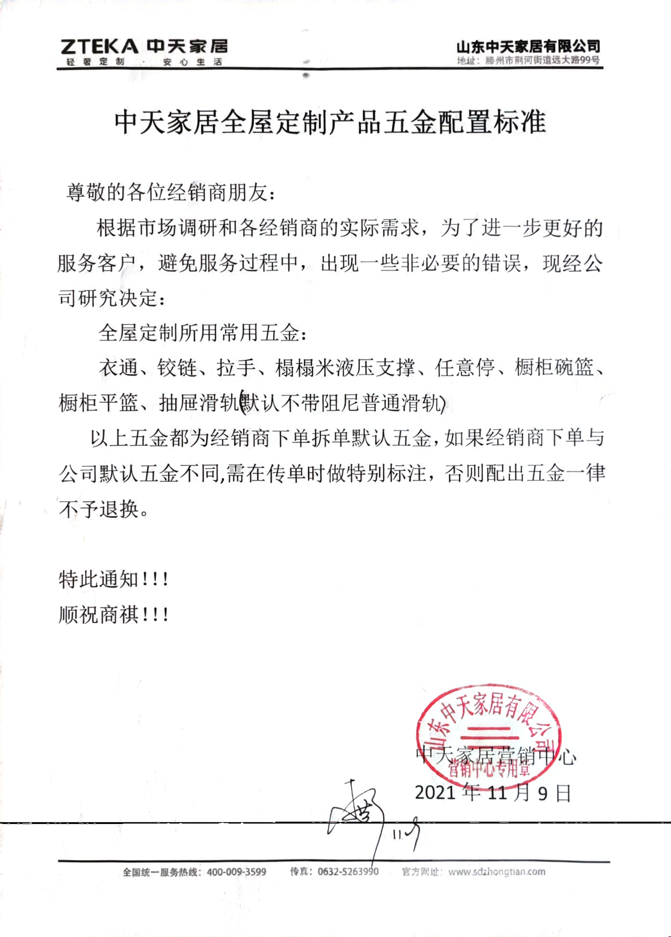 中天家居产品价格预调整通知